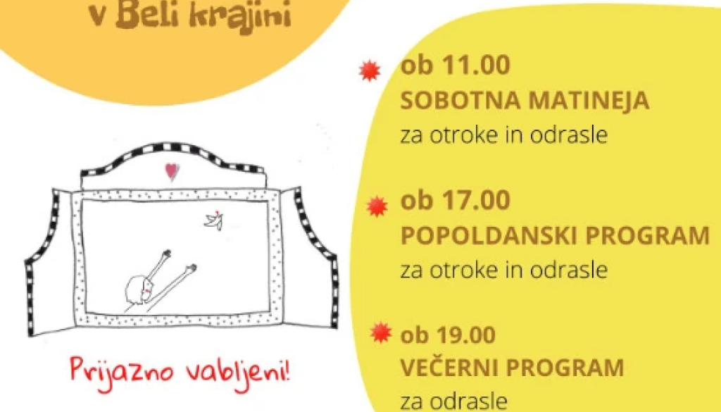 Knjižnica ČrnomeljPrijazno vabljeni v Knjižnico Črnomelj na že 10. festival kamišibaja v Beli krajini, ki ga organizirajo KUD Zlata skledica, Društvo Kamišibaj Slovenije, JSKD OI Črnomelj in Knjižnica Črnomelj. Dopoldanski del ob 11. uri bo namenjen predstavam za otroke, na popoldanskem ob 17. uri pa so poleg otrok lepo vabljeni tudi starši in drugi ljibitelji papirnatega gledališča, saj bosta oba popoldanska dogodka, zlasti večerni ob 19. uri, namenjen odraslim.