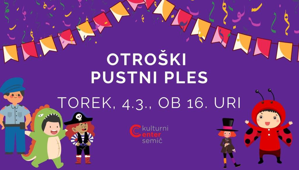 Kulturni center Semič in Turistično društvo Semič vas vabita na 10. OTROŠKI PUSTNI PLES na pustni torek, 4. marca, ob 16. uri v Kulturni center Semič.