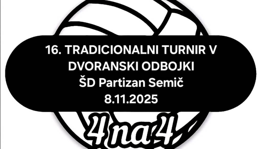 Telovadnica Partizan SemičŠportno društvo Partizan Semič vas vabi na 16. TRADICIONALNI TURNIR V DVORANSKI ODBOJKI v soboto, 8. novembra 2025, ob 9. uri v telovadnico Partizan Semič.