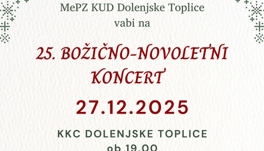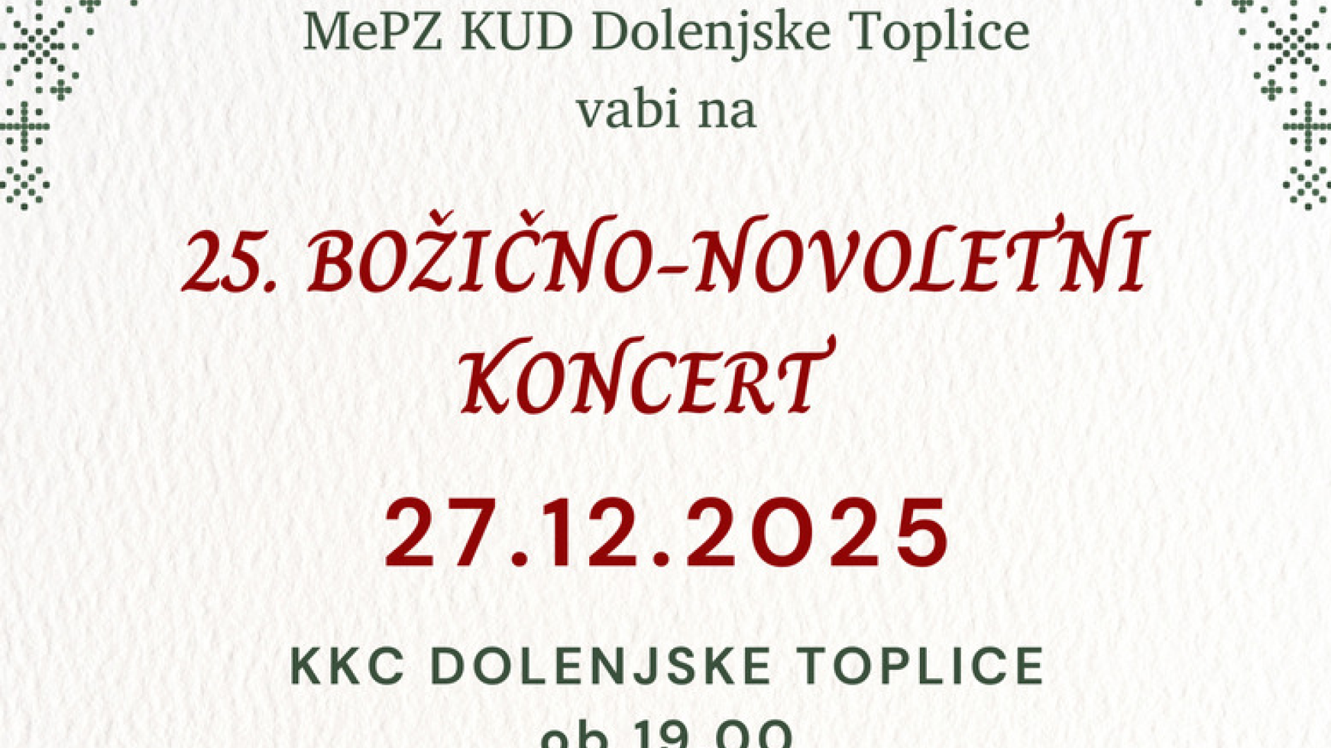 KKC Dolenjske TopliceVabljeni na tradicionalni 25. Božično-novoletni koncert, s katerim bomo skupaj sklenili leto in pričakali praznične dni.
