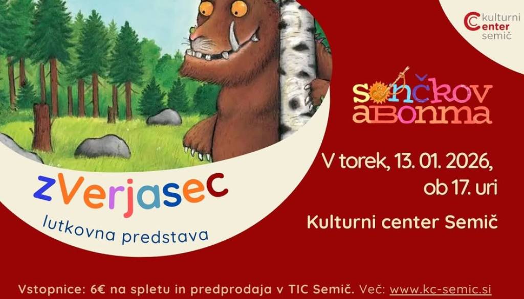 Kulturni center Semič🎭 𝐎𝐭𝐫𝐨𝐬̌𝐤𝐢 𝐒𝐨𝐧𝐜̌𝐤𝐨𝐯 𝐚𝐛𝐨𝐧𝐦𝐚 𝟐𝟎𝟐𝟓/𝟐𝟎𝟐𝟔: 𝐙𝐕𝐄𝐑𝐉𝐀𝐒𝐄𝐂, lutkovna predstava Lutkovnega gledališča Ljubljana.