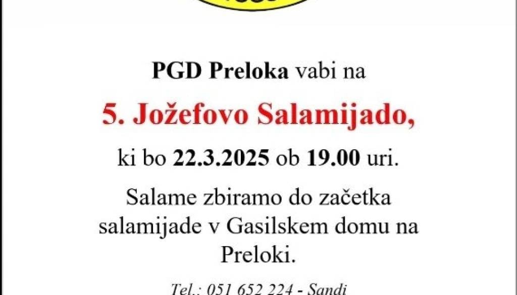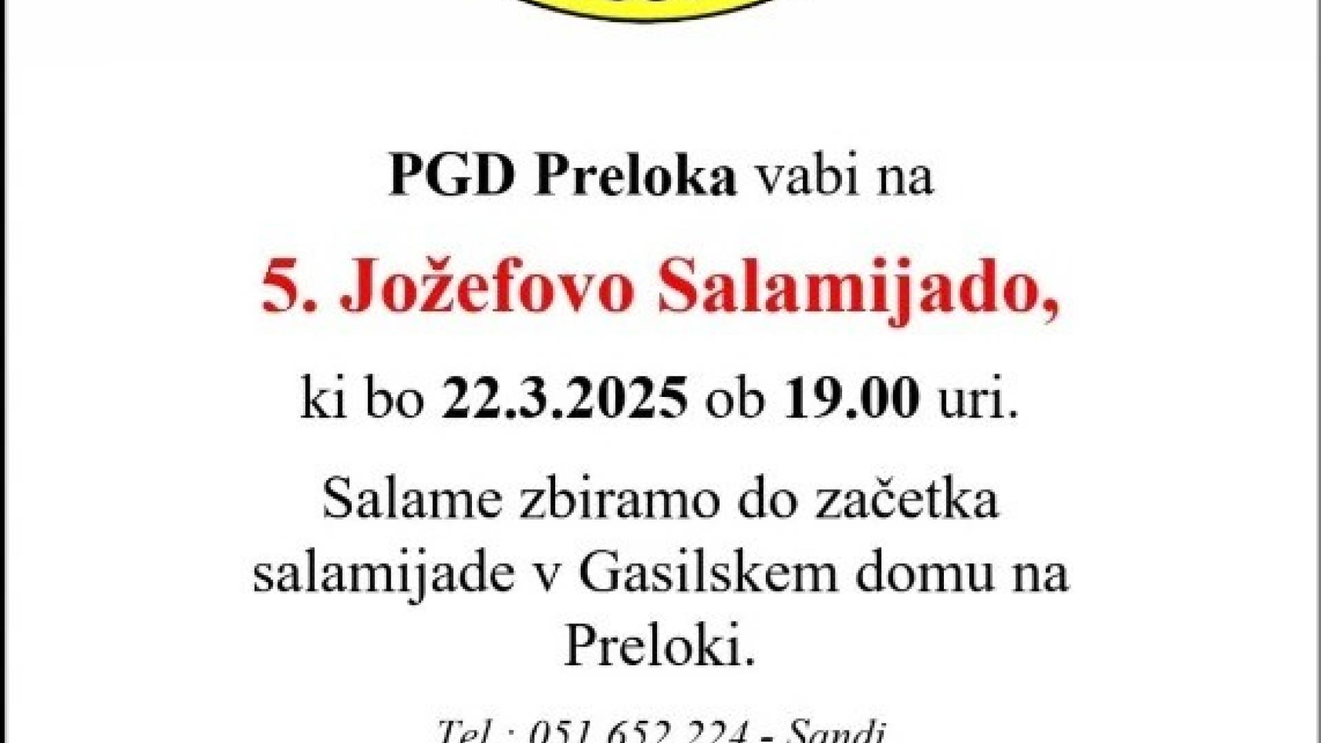 5. Jožefova salamijada gregor1 | 19. marec 2025 12:14 v Ostalo Termin Sobota, 22. marec 2025 19:00 Lokacija Gasilski dom Preloki 5. Jožefova salamijada