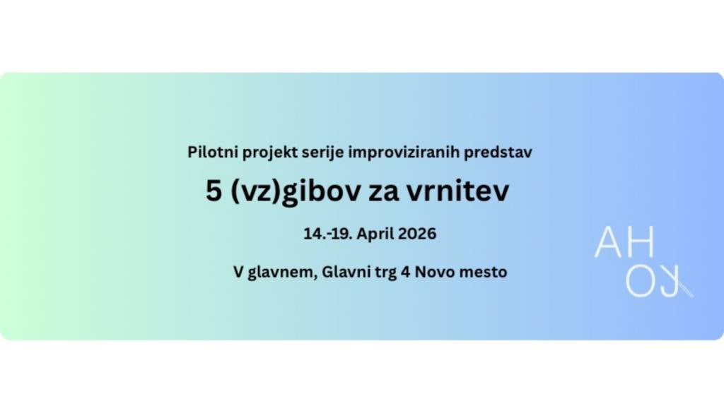 V glavnem, Glavni trg 4, Novo MestoVabljeni na premierni cikel javnih performativnih srečanj pod vodstvom plesalca, koreografa in pedagoga Milana Tomášika. Projekt 5 (vz)gibov za vrnitev združuje ples, glasbo, performativno in vizualno umetnost ter temelji na principu instantne kompozicije – ustvarjanju v danem trenutku skozi spontan dialog med umetniki in občinstvom. Vsako srečanje je edinstveno in nastaja v živo.