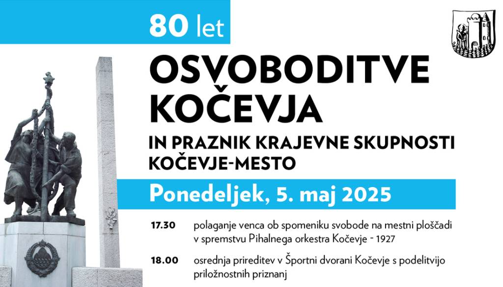 Pokrajinski muzej KočevjeOb 80. obletnici osvoboditve Kočevja in ob prazniku Krajevne skupnosti Kočevje-mesto vas v ponedeljek, 5. maja 2025, vljudno vabimo, da se nam pridružite na slavnostnem dogodku.