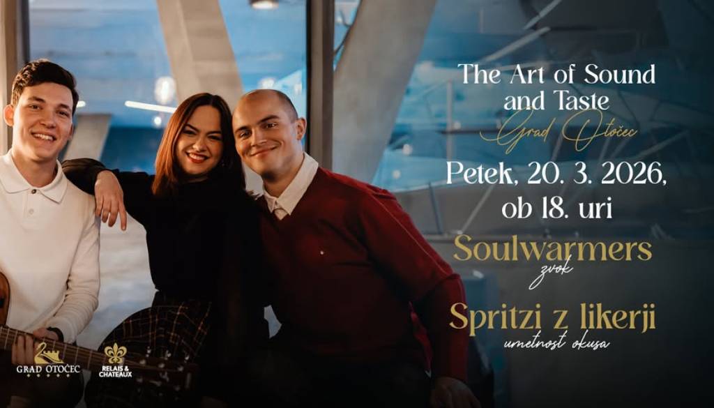 👉️ V petek, 20. 3. 2026, ob 18. uri, ko bo za nepozabno vzdušje poskrbeli mladi glasbeniki Soulwarmers, za umetnost okusa pa spritzi z likerji.