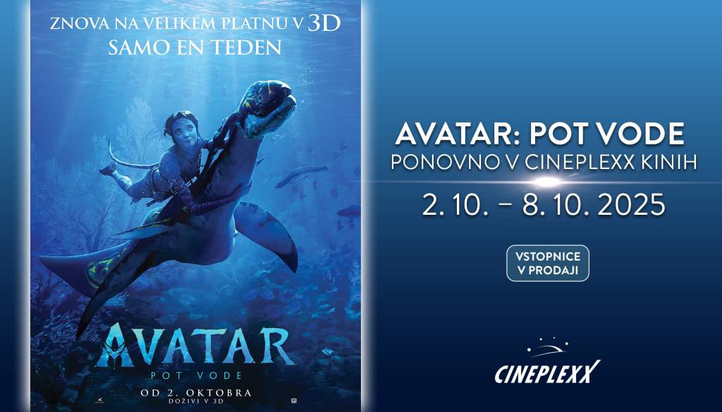 Cineplexx Novo mestoPonovno predvajanje filma Avatar: Pot vode iz leta 2022, samo en teden od 2.10 - 8.10. v vseh Cineplexx kinih. Samo v 3D!