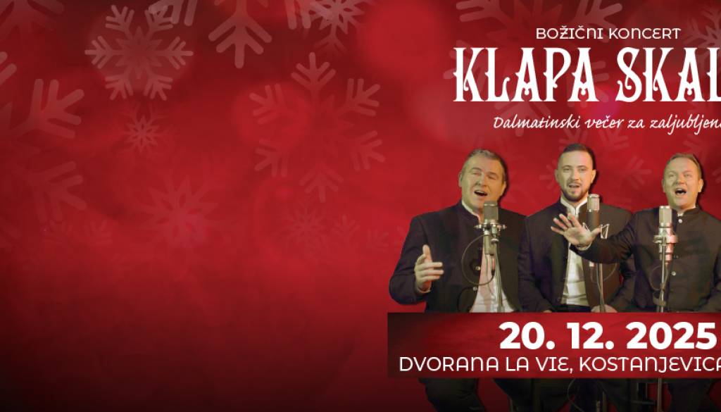Klapa Skala, avtorji ene največjih slovenskih uspešnic "Tri dni sem ljubil", vas vabijo na Božični koncert.