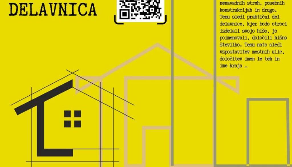 Otroci se bodo podali v ustvarjalni svet arhitekture in skozi igro pridobivali osnovna znanja o zasnovi čudovitih hiš, nenavadnih streh, posebnih konstrukcijah in drugo. Temu sledi praktični del delavnice, kjer bodo otroci izdelali svojo hišo, jo poimenovali, določili hišno številko. Temu nato sledi vzpostavitev mestnih ulic, določitev imen le teh in ime kraja …