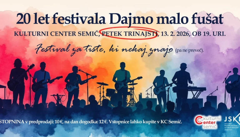 20 let festivala 🎸 𝐃𝐀𝐉𝐌𝐎 𝐌𝐀𝐋𝐎 𝐅𝐔𝐒̌𝐀𝐓 🎸 𝐹𝑒𝑠𝑡𝑖𝑣𝑎𝑙 𝑧𝑎 𝑡𝑖𝑠𝑡𝑒, 𝑘𝑖 𝑛𝑒𝑘𝑎𝑗 𝑧𝑛𝑎𝑗𝑜 (𝑎 𝑛𝑒 𝑝𝑟𝑒𝑣𝑒𝑐̌). Že dvajsetič zapored se bodo predstavile 𝐚𝐦𝐚𝐭𝐞𝐫𝐬𝐤𝐞 𝐠𝐥𝐚𝐬𝐛𝐞𝐧𝐞 𝐬𝐤𝐮𝐩𝐢𝐧𝐞 ...