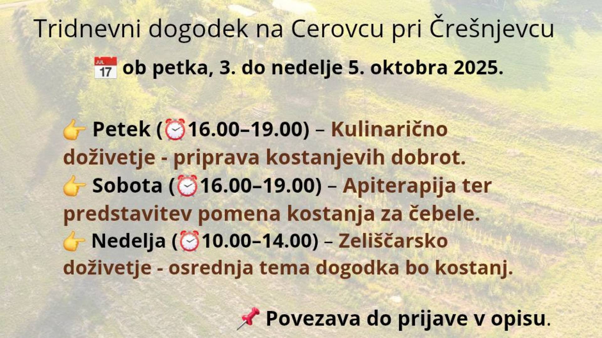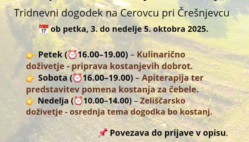 Čebela krajina, Cerovec pri Črešnjevcu 6Kostanj in delovanje Čebele krajine nas bosta povezovala tri dni.