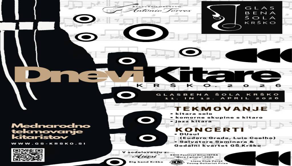 Dnevih kitare Krško, ki bodo potekali na Glasbeni šoli Krško, 11. in 12. aprila 2026 in obsega: