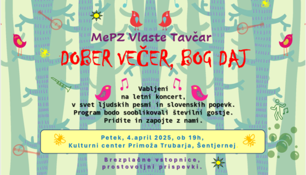 KCPT ŠentjernejMePZ Vlaste Tavčar vabi na letni koncert v domači kulturni hram.