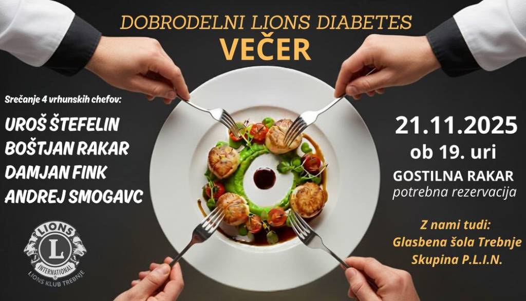 vabimo vas, da se nam pridružite na naši osrednji prireditvi Lions diabetes večeru, kjer bomo združili prijetno s koristnim – dobro hrano, dobro družbo in dobrodelnost.