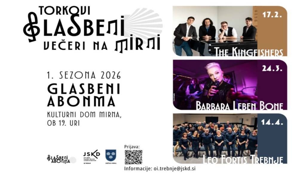 V abonma se lahko vpišete do 17. februarja 2026, ko bo na sporedu prvi koncert. Cena abonmaja je 20 €, cena vstopnic za izven pa 10 €. Za otroke do 12. leta je abonma ob predhodni prijavi brezplačen. Za več informacij pišite na [email protected].