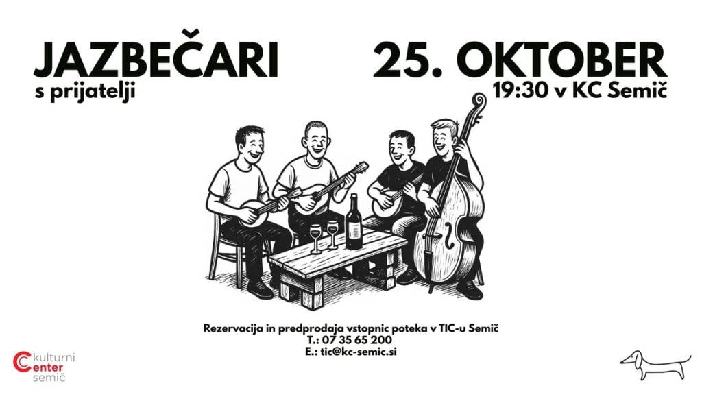 Kulturni center SemičTamburaška skupina Jazbečari vas vabijo na koncert JAZBEČARI S PRIJATELJI v soboto, 25. oktobra 2025, ob 19.30 v KC Semič.