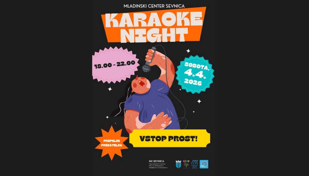 KARAOKE NIGHT Luka GF | 24. marec 2026 12:35 v Zabava Termin Sobota, 4. april 2026 18:00 Lokacija Mladinski center Sevnica Vstop prost. Vabljeni!