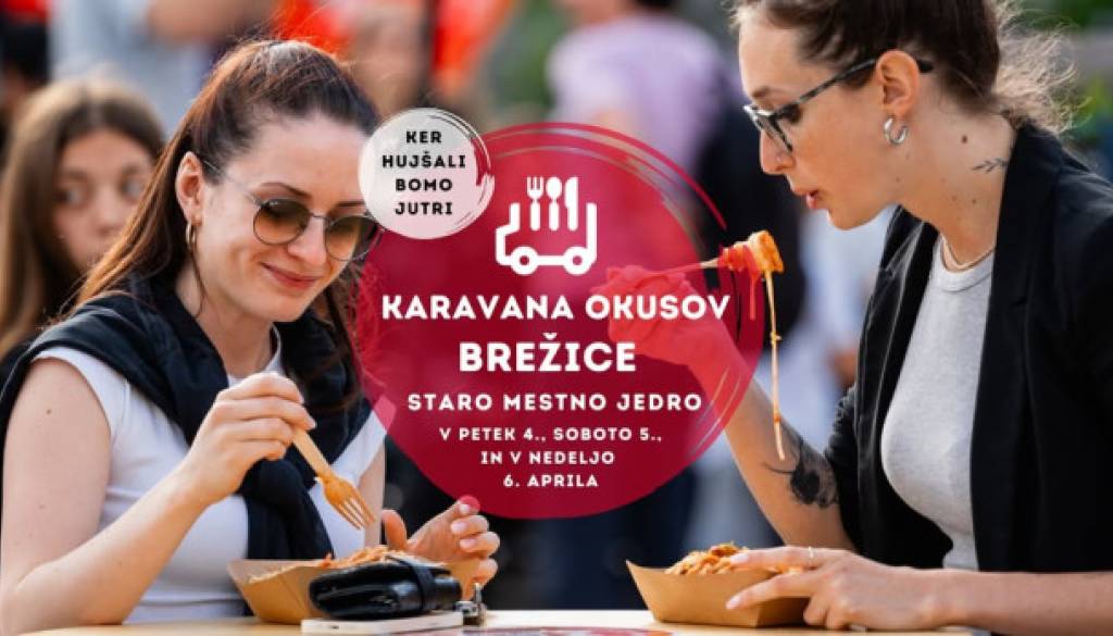 Cesti prvih borcev v BrežicahPetek, 4. 4., od 12.00 dalje na Cesti prvih borcev v Brežicah: Karavana okusov Brežice – prvi slovenski food truck festival (tudi 5. in 6. 4.)
