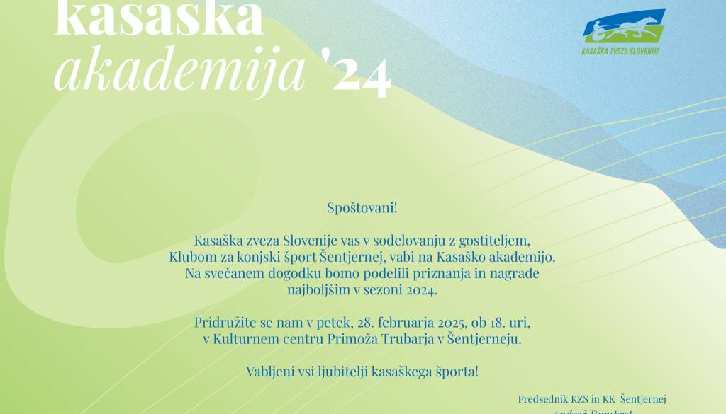 Kulturni center Primoža TrubarjaKasaška zveza Slovenije vabi v petek, 28. februarja, ob 18. uri na kasaško akademijo, osrednji letni dogodek slovenskega kasaškega športa, ko bodo podelili priznanja najboljšim voznikom, trenerjem, lastnikom rejcev in konjem v pretekli sezoni ter posebna priznanja za življenjsko delo in izjemne dosežke.