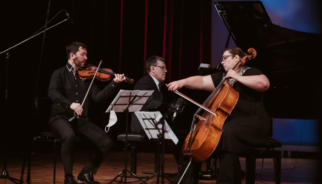 KLAVIRSKI TRIO: Janez Podlesek, violina; Karmen Pečar Koritnik, violončelo; Aleksandar Serdar, klavir