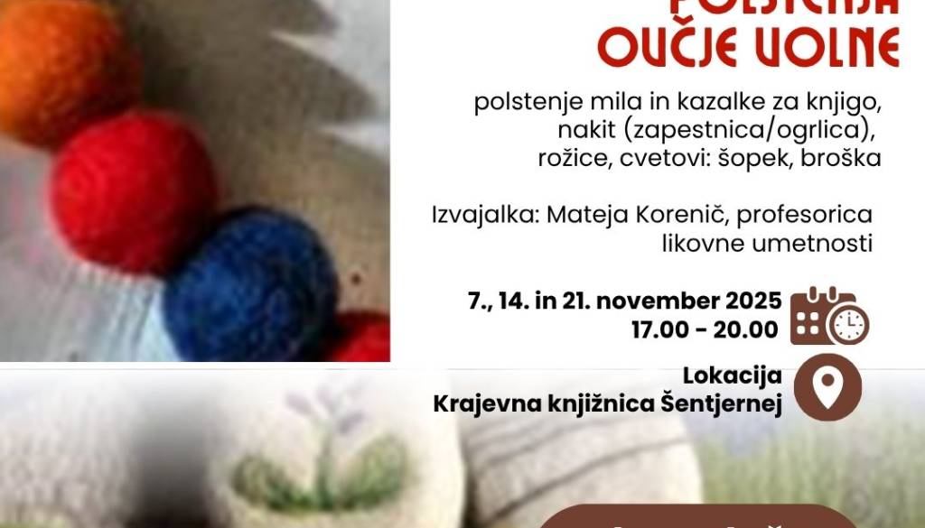 Knjižnica ŠentjernejSPOZNAJMO SLOVENSKO TRADICIJO POLSTENJA OVČJE VOLNE