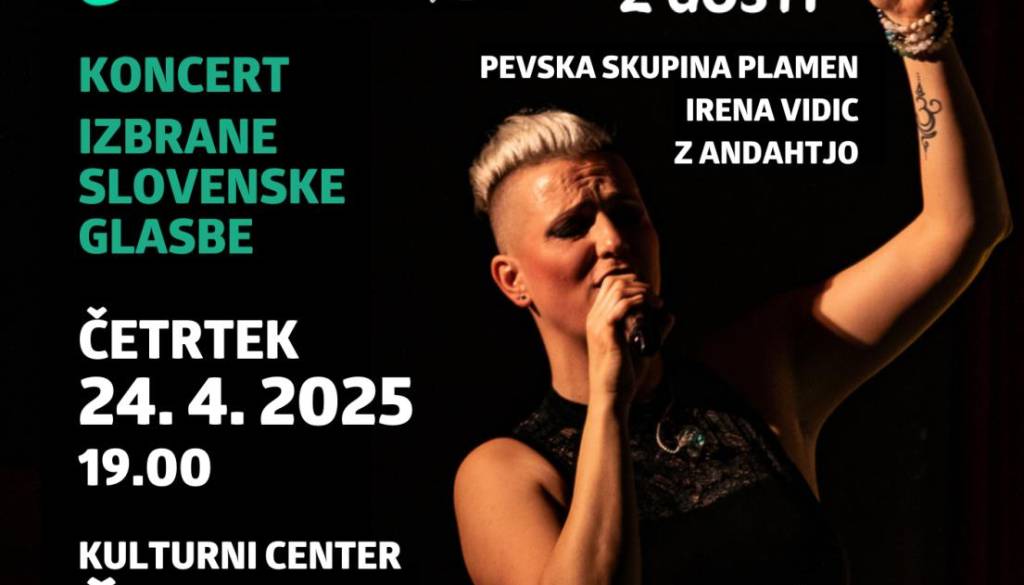 Ne zamudite priložnosti za večer vrhunske slovenske glasbe v prijetnem ambientu Kulturnega centra Škocjan.