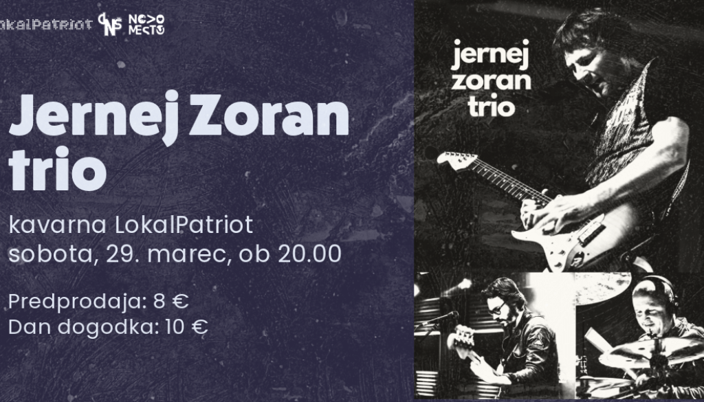 LokalPatriot Novo mestoLepo vabljeni na koncert skupine Jernej Zoran Trio, ki bo nastopila 29. 3. 2025 ob 20.00 v kavarni LokalPatriot.