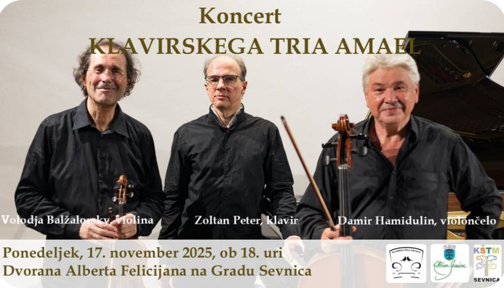 Grad SevnicaKoncert Klavirskega tria Amael (Zoltan Peter – klavir, Volodja Balžalorsky – violina, Damir Hamidulin – violončelo)