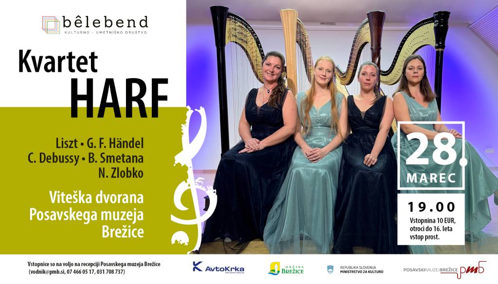 Viteška dvorana Posavski muzej BrežiceSobota, 28. marec, 19.00: Koncert kvarteta harf