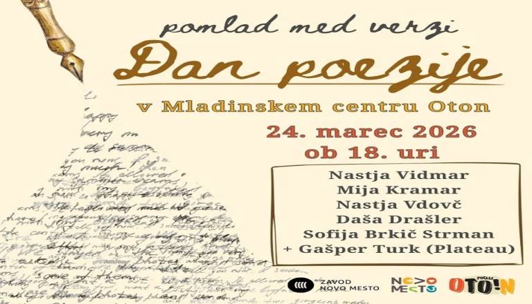 Mladinski center Oton vas vabi na literarni večer ob Dnevu poezije, ki bo potekal v torek, 24. marca 2026, ob 18. uri. Za pomladno vzdušje, prepleteno z verzi ...