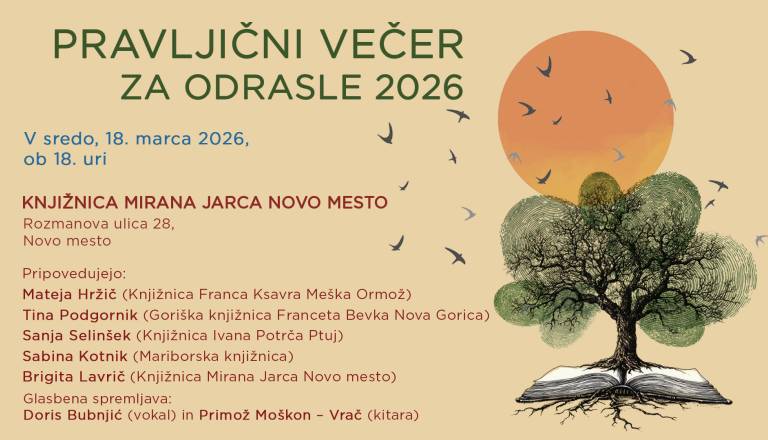 Lepo vabljeni na pravljični večer za odrasle, na katerem bodo nastopili pravljičarji iz slovenskih knjižnic, z glasbo pa ga bosta začinila Doris Bubnjić (vokal) ...