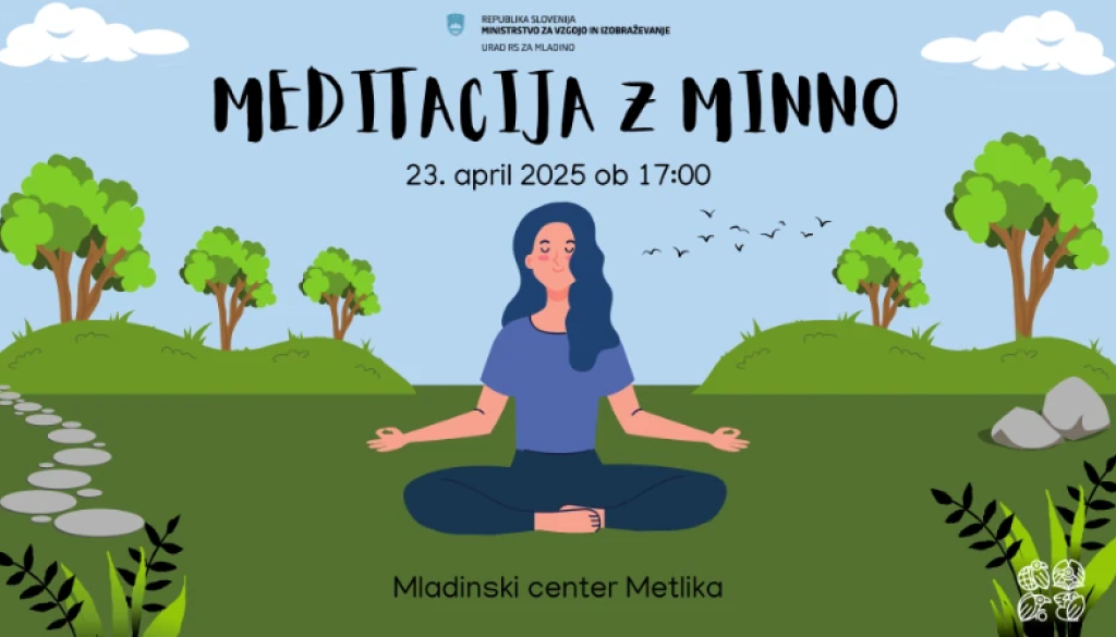 Mladinski center MetlikaPripravljamo prav posebno delavnico meditacije in ozaveščanja. Vodila jo bo Minna Pečavar. Posvetili se bomo raznim tehnikam dihanja, ozaveščanja telesa in duha.