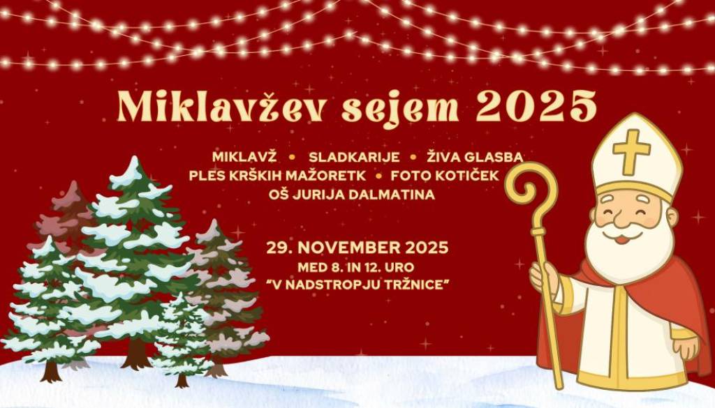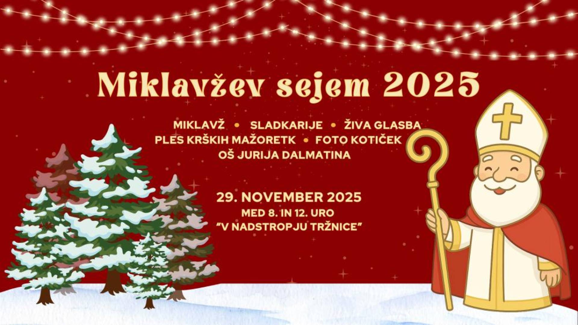 Tržnica KrškoV soboto, 29.11.2025 med 8.00-12.00 bo v nadstropju tržnice v Krškem oživel Miklavžev sejem s prazničnim vzdušjem, otroškim navdušenjem in toplimi trenutki za vso družino.