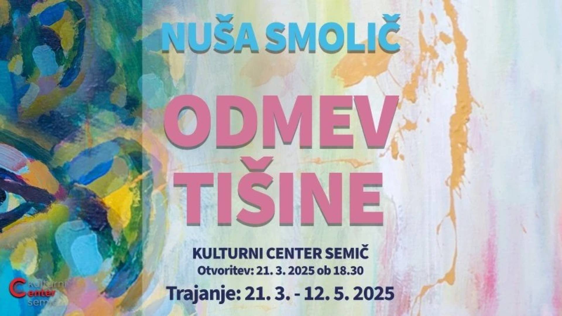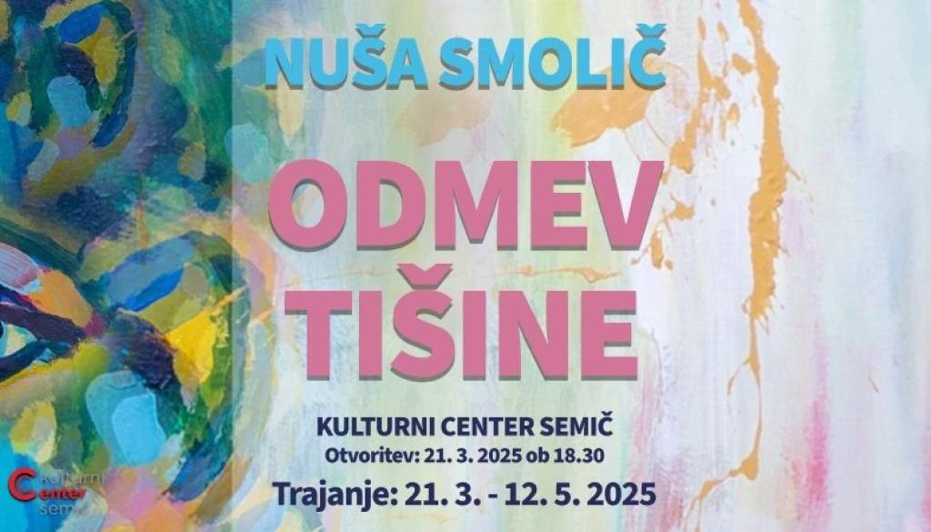 Kulturni center SemičKulturni center Semič vas ob 18:30 vabi na odprtje slikarske razstave “Odmev tišine” akademske slikarke Nuše Smolič.