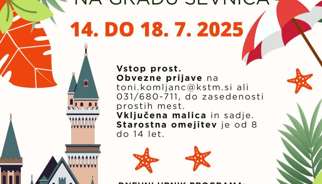 Počitniški teden na gradu Sevnica gubicnives | 7. julij 2025 09:14 v Za otroke Termin Ponedeljek, 14. julij 2025 8:30 - Petek, 18. julij 2025 16:00 Lokacija Grad Sevnica Vabljeni !