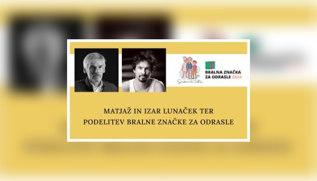 Pogovor z Matjažem in Izarjem Lunačkom ter podelitev bralne značke za odrasle, Knjižnica Mirana Jarca