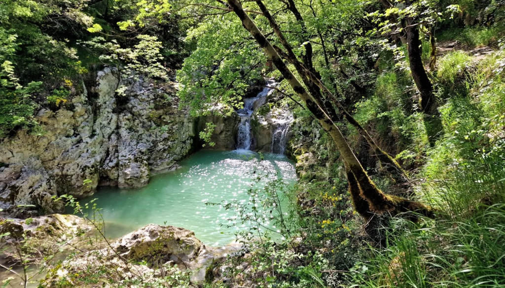 TURA: Našo turo bomo začeli ob soteski reke Mirne, v katerih je voda ustvarila jezera, brzice in tolmune, najlepši so pa slapovi. Vsak od sedmih slapov je poseben, najbolj pa pritegne pozornost tretji slap s svojimi 26 metri. Tam se tudi nahaja žig. Nadaljujemo in vstopamo v Buzetski kanjon, kjer se nahaja tudi plezališče. Nato sledi strmejši vzpon, kjer so nam v pomoč klini in jeklenice. Po ogledu četrtega slapu, nas bo pot vodila do Napoleonovega mostu mimo zapuščenih vasi do zaselka Kotlje, kjer se nahajajo tolmuni, zapuščeni mlin in peti slap. Ne daleč naprej sledita še dva slapova. Celotna krožna pot je dolga 15 km in ni tehnično zahtevna. Za celotno pot bomo potrebovali nekje od 6 do 7 ur zmerne hoje s postanki. Predviden prihod v Novo mesto je v poznih popoldanskih urah.
