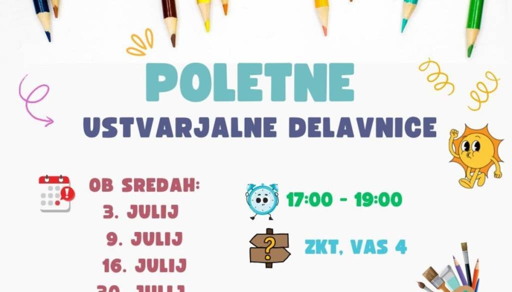 Poletje in počitnice so tukaj in z njimi tudi čas za ustvarjalnost, igro in nove dogodivščine! Z veseljem vas vabimo na poletne delavnice za otroke, kjer bomo skupaj ustvarjali, se igrali, družili in preživeli nepozabne urice v sproščenem okolju.
