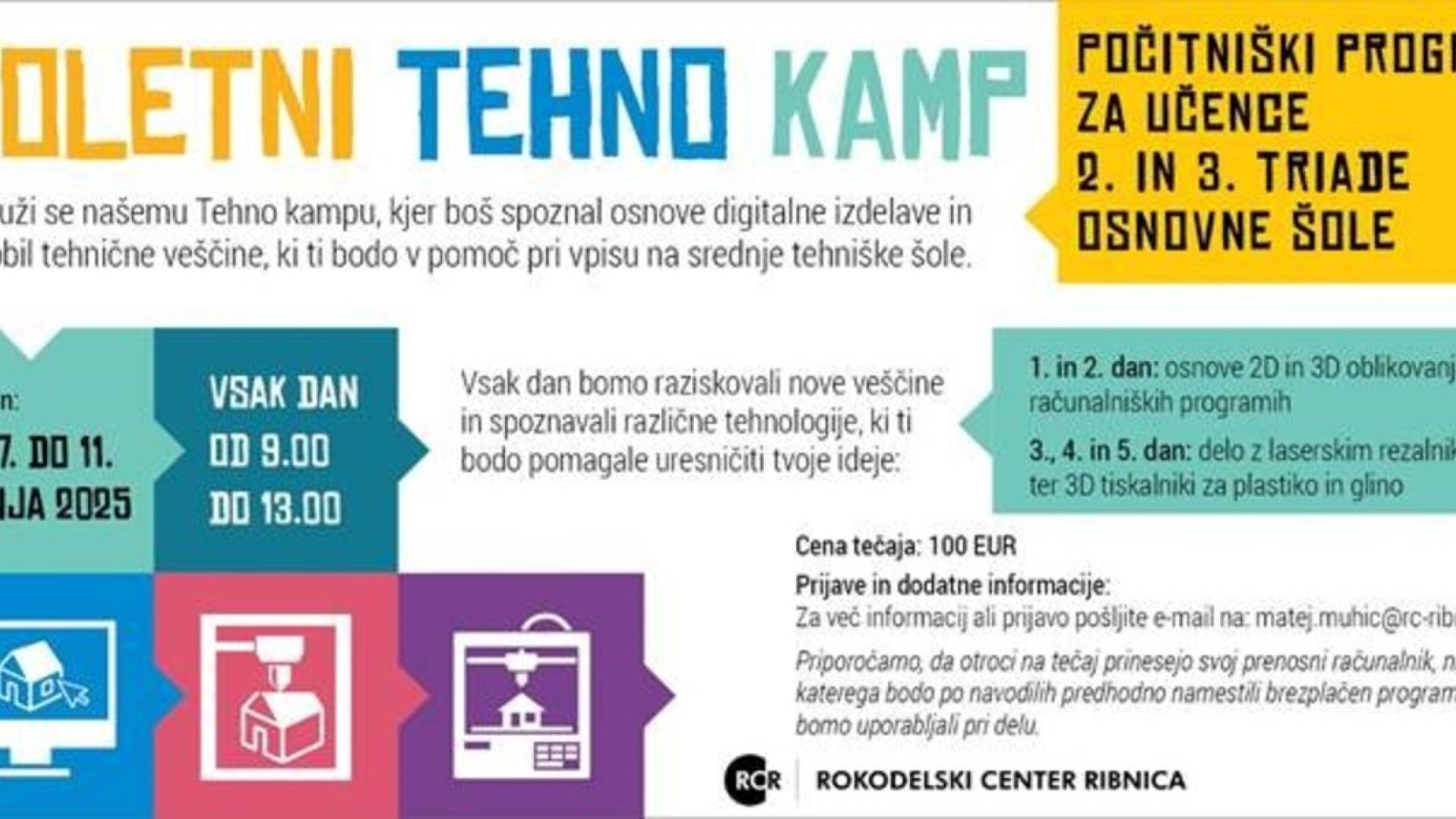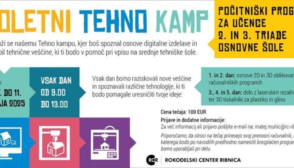 Delavnice bodo potekale vsak dan med 9. in 13. uro, otroci pa bodo spoznavali različne tehnologije – od 2D in 3D oblikovanja do dela z laserskim rezalnikom in 3D tiskalniki. Namenjene so vsem, ki jih zanima ustvarjanje in tehnologija.
