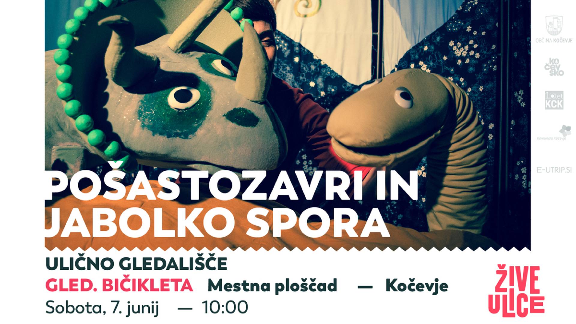 Mestna ploščadV času festivala Žive ulice bo vsako soboto ob 10.00 na Mestni ploščadi čas za gledališko predstavo namenjeno otrokom (in staršem). Prva bo na sporedu predstava Pošastozavri in jabolko spora, v kateri si Ceratozaver želi biti strašen, Alozaver pa si s svojimi velikanskimi zobmi želi biti še bolj grozljiv. In strašansko grozovit hoče biti tudi komaj izvaljeni Tiranozaver. Hmmm. Rastlinojedi dinozavri bežijo pred njimi. Potem pa prestrašeni dinozavri staknejo glave skupaj in s pametjo vso to strašnost z enim zamahom premagajo!