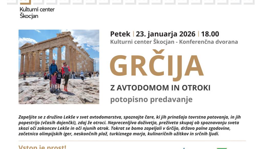Kulturni center ŠkocjanVabljeni na navdihujoče potovanje po Grčiji – iz prve roke in skozi objektiv družine Lekše, ki svet raziskuje na štirih kolesih!
