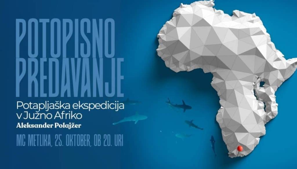 Potopisno predavanje Potapljaška ekspedicija v Južno Afriko gregor1 | 19. oktober 2025 11:23 v Kultura Termin Sobota, 25. oktober 2025 20:00 Lokacija Mladinski center Metlika Potopisno predavanje Potapljaška ekspedicija v Južno Afriko