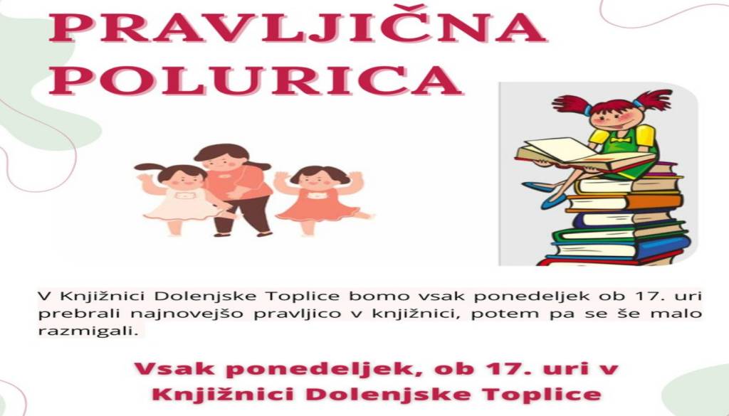 Znova vabljeni na Pravljične pol-urice, ki bodo v letošnjem letu vsak ponedeljek ob 17. uri v krajevni knjižnici v Dolenjskih Toplicah.