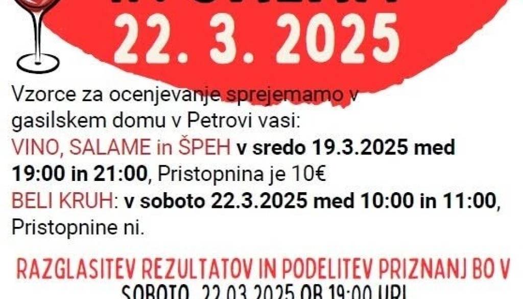 Pobiranje vzorcev za ocenjevanje bo potekalo (vino, samale in slanina) 19. marca med 19. in 21. uro (pristopnina 10€).