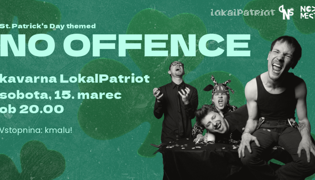 LokalPatriot Novo mestoVabljeni na praznovanje St. Patrick’s Daya z No Offence v LokalPatriotu, 15. marca, ob 20.00. Za vas bomo pripravili akcijo Guinessa in Welcome Shote.