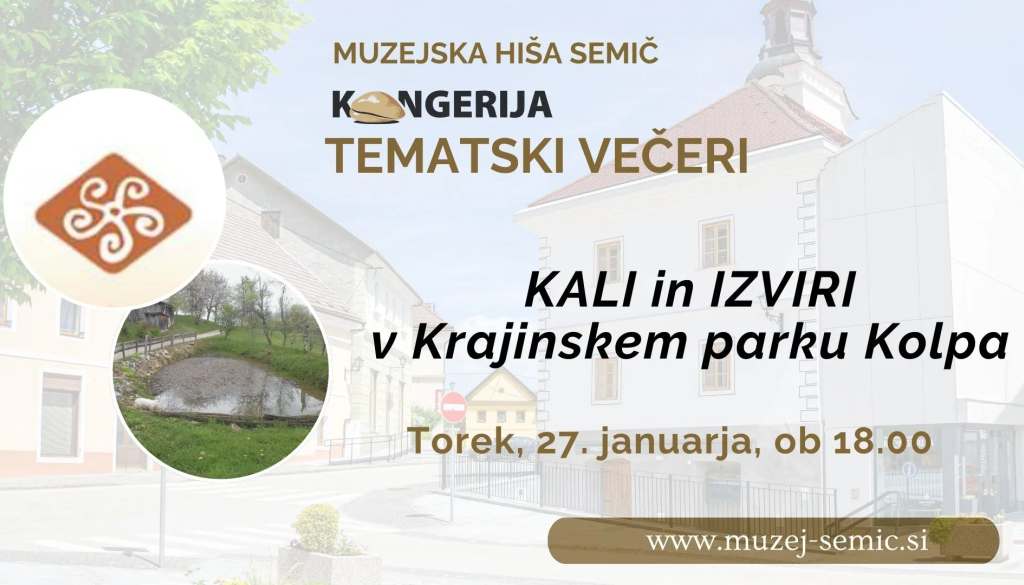 Muzejska hiša SemičKulturni center Semič vas v sklopu Tematskih večerov v Muzejski hiši Semič vabi na predavanje KALI IN IZVIRI V KRAJINSKEM PARKU KOLPA v torek, 27. januarja 2026, ob 18.00.