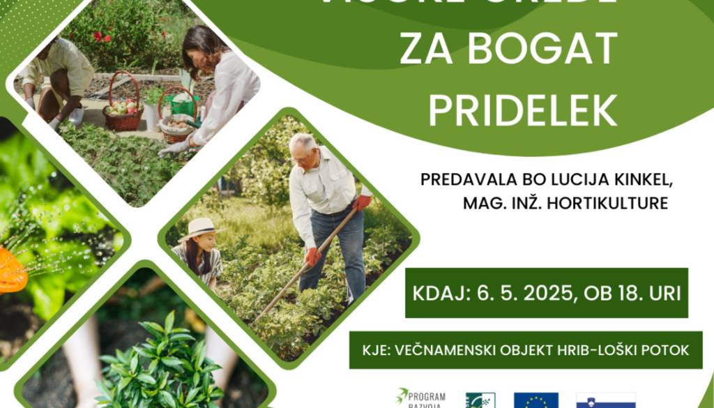 Večnamenski objekt Hrib - Loški PotokObčina Loški Potok vas skupaj za Društvom upokojencev Loški Potok vabi na predavanje VISOKE GREDE ZA BOGAT PRIDELEK, ki bo v torek, 6. 5. 2025, ob 18. uri, v Večnamenskem objektu Hrib-Loški Potok, Hrib 19 a. Predavala bo Lucija Kinkel, mag. inž. hortikulture iz Kluba Gaia.
