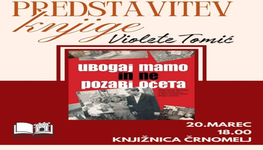 Knjižnica ČrnomeljVioleta Tomić, igralka, režiserka, TV voditeljica in nekdanja poslanka, je v svoji avtobiografiji Ubogaj mamo in ne pozabi na očeta odprla vrata svoje globoke in boleče osebne zgodbe. Skozi brutalno iskreno samoanalizo se dotakne travm, zlorab in iskanja notranjega miru, ki jo je vodilo skozi številne metode samospoznavanja, od meditacij do šamanskih praks. Knjiga bralca popelje na pot samospoznavanja, ki osvobaja, hkrati pa ponuja vpogled v življenjske izkušnje, ki so popolnoma drugačne od tistih, ki jih srečujemo v vsakdanjem življenju.