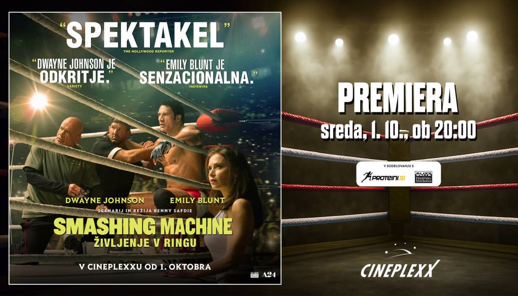 Cineplexx Novo mestoNe zamudite premiere težko pričakovanega filma SMASHING MACHINE: ŽIVLJENJE V RINGU, ki bo v sredo, 1. oktobra 2025, ob 20:00 v vseh Cineplexx kinih.