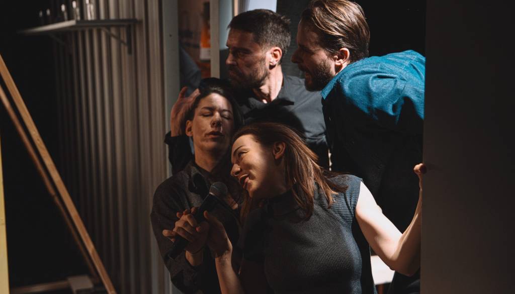 Kulturni dom KrškoSimbol ≈ v matematiki in ekonomiji zaznamuje pomenskost približnega enačaja oziroma v dobesednem pomenu približno enako kot, kar je definicija, s katero besedilo preizprašuje vso medčloveško vrednost v omenjenem besedilu, ko jo primerja z močjo kapitala. Khemiri, ki je poleg literature doštudiral tudi ekonomijo, s tekstom uresniči strašno, a ekstremno vsakdanjo predpostavko: kaj če bi lahko prav vse, kar doživimo, kar nas obdaja, kar pričakujemo in kaj obžalujemo, zvedli na ekonomske formule prihodka in ultimativega dobička? Ali z drugimi besedami: pred nami izriše naš vsakdan, ki ga diktira ponotranjena sodobna kapitalistična mentaliteta. Velik dosežek Khemirijevega besedila je, da kljub izjemno kompleksni tematiki v svojem besedilu ustvari izrazito živ in poln svet, ki fascinira s hitrostjo in premišljenostjo. Pripoved in perspektivo zgodbe si izmenjuje več kot dvajset dramskih oseb, ki zajemajo vse od predavanj znanstvenikov z začetka devetnajstega stoletja, direktnih nagovorov publike s strani vodje uprizoritve pa do sodobnih intimnih relacij, med njimi pa Khemiri spretno krmari s konstantnimi spremembami gledališkega koda: od popolnoma dramskih prizorov do ex cáthedra razlag, intervjujev pa postdramskih situacij, kjer gledalec postane del odrske izgovarjave.