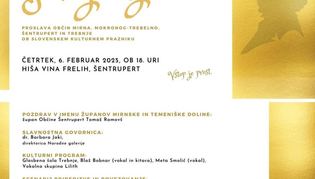 Vabljeni na tradicionalno prireditev Prijatlji! Proslava občin Mirna, Mokronog - Trebelno, Šentrupert in Trebnje ob slovenskem kulturnem prazniku.